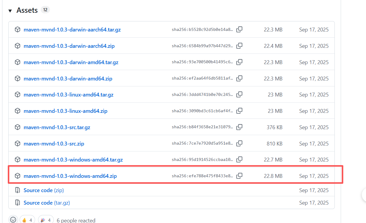 从 mvnd GitHub Releases 下载对应操作系统的压缩包并解压。