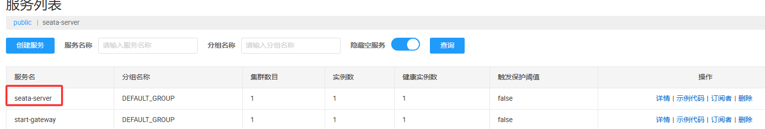 docker-compose up -d查看Naocs中seata是否注册成功