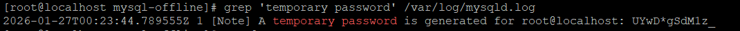 grep 'temporary password' /var/log/mysqld.log